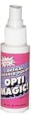 OPTI MAGIC® is a water-based eyeglass cleaning, polishing, and protecting solution with a milky white color. It may also be used on sunglasses, goggles, binoculars, cameras, projectors, television screens, computer screens, magnifiers, watches, and all other glass or plastic surfaces, but it should not be used on contact lenses or on some of the lenses treated with anti-glare coatings. This formula removes grease, dirt, fingerprints, and hazy films; forms an optically clean, long-lasting protective coating that helps repel dirt, dust, and abrasives that could harm lenses; and fills in hairline scratches to clarify lenses, which in turn helps promote clearer vision. One application brings such a dramatic change to the clarity of the lenses that the eyeglass wearer is instantly impressed. Anti-static qualities of the treated surface are greatly improved. OPTI MAGIC® includes no abrasives or alcohol and has a pH of 6.5-7.0. It is non-flammable, and contains no carcinogens or hazardous ingredients as defined in the OSHA hazard communication standard. If the liquid is accidentally swallowed, just drink a glass of water. If it is splashed in the eyes, flush with water. Spray OPTI MAGIC® on both sides of each lens of your eyeglasses and rub it in with your finger. Let it try for about 60 seconds and then polish the surface with a tissue. Each application should last for at least one week. The 2 oz. bottle contains approximately 200 applications. OPTI MAGIC® can be easily removed with warm water.